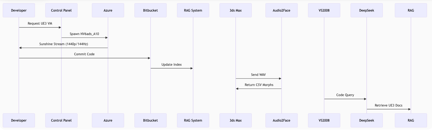 A cloud-based Unreal Engine 3 (UE3) remote development environment with AI-assisted tools. It combines cost efficiency, automation, and modern cloud technologies to create a budget-friendly yet powerful game development platform. Here's my breakdown and thoughts: